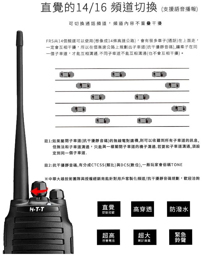 - 頻道數量:14/16 組(頻率/靜音碼可規劃)