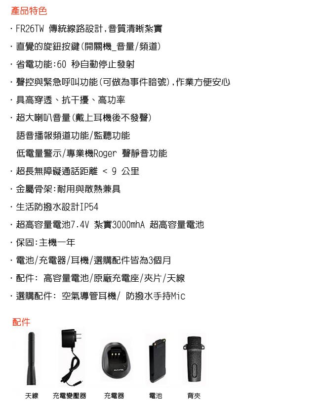 H.T.T FR26TW長距離無線對講機 FR26TW